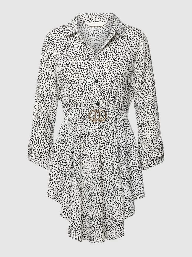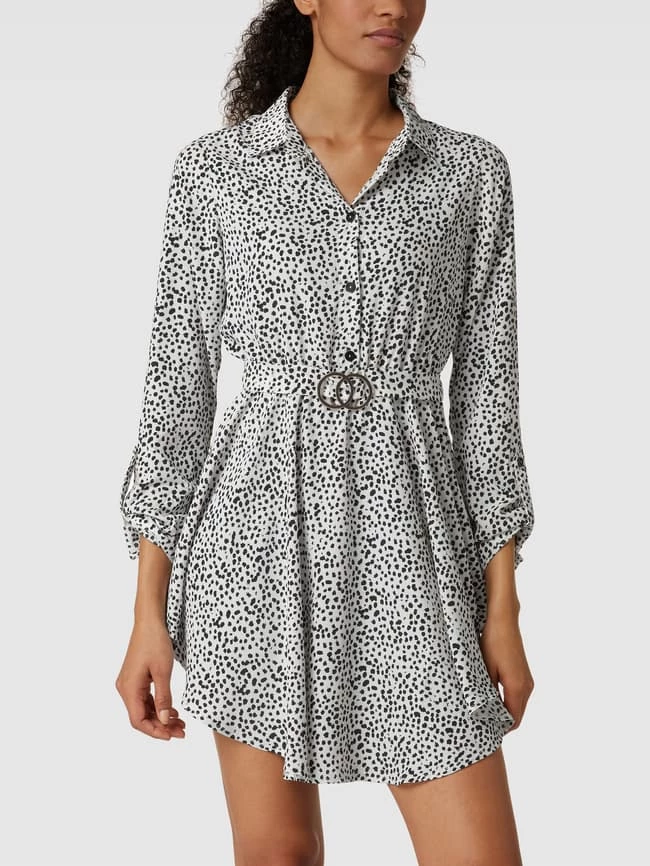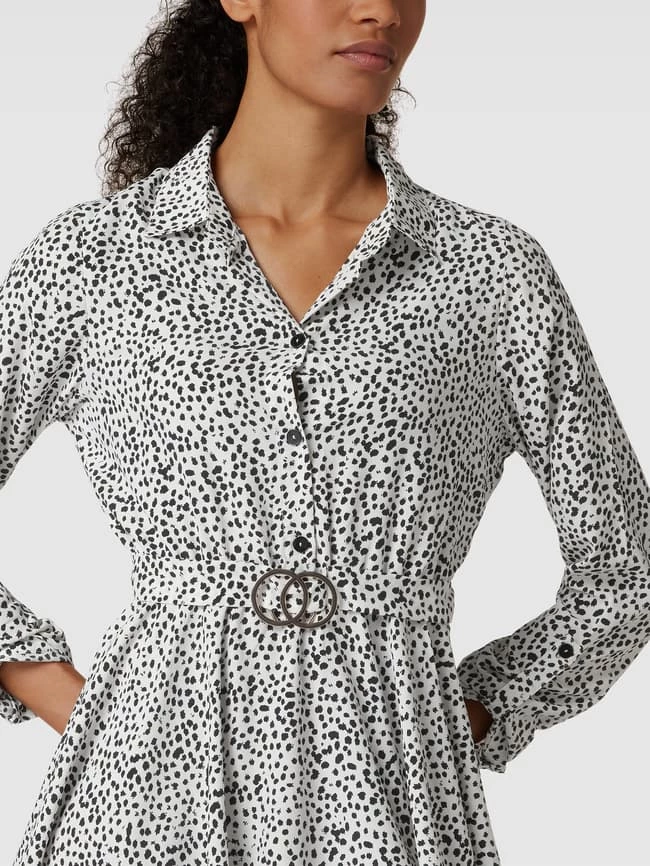 Das Kleid von Apricot ist aus einem strapazierfähigen Material gefertigt und tailliert geschnitten. Es zeigt sich mit Allover-Muster, Taillenband sowie Kentkragen.