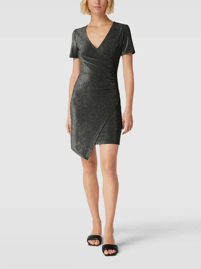Das Minikleid von Apricot ist aus einem Material-Mix mit Elasthan-Anteil gefertigt und körpernah geschnitten. Es zeigt sich in schimmernder Optik mit V-Ausschnitt.