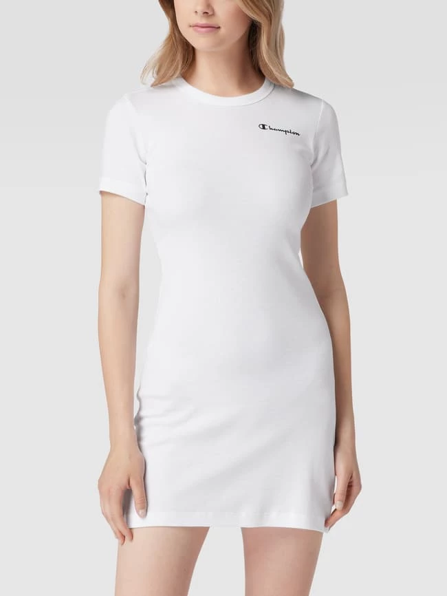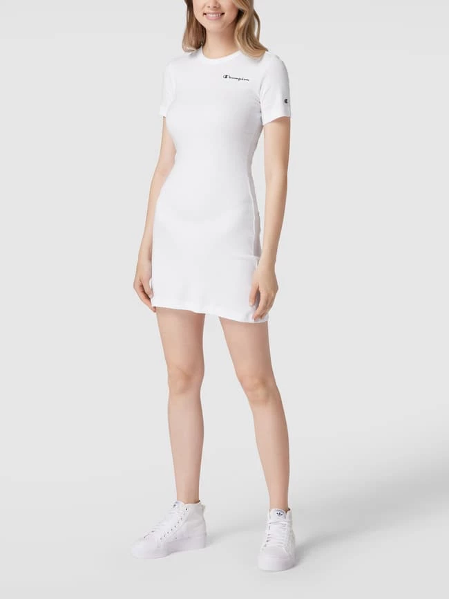 Das Sweatkleid von Champion ist aus reiner Baumwolle gefertigt und in körpernaher Passform gehalten. Es zeigt sich in melierter Optik mit Rundhalsausschnitt und Label-Prints.