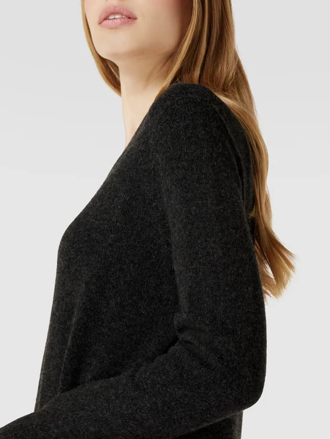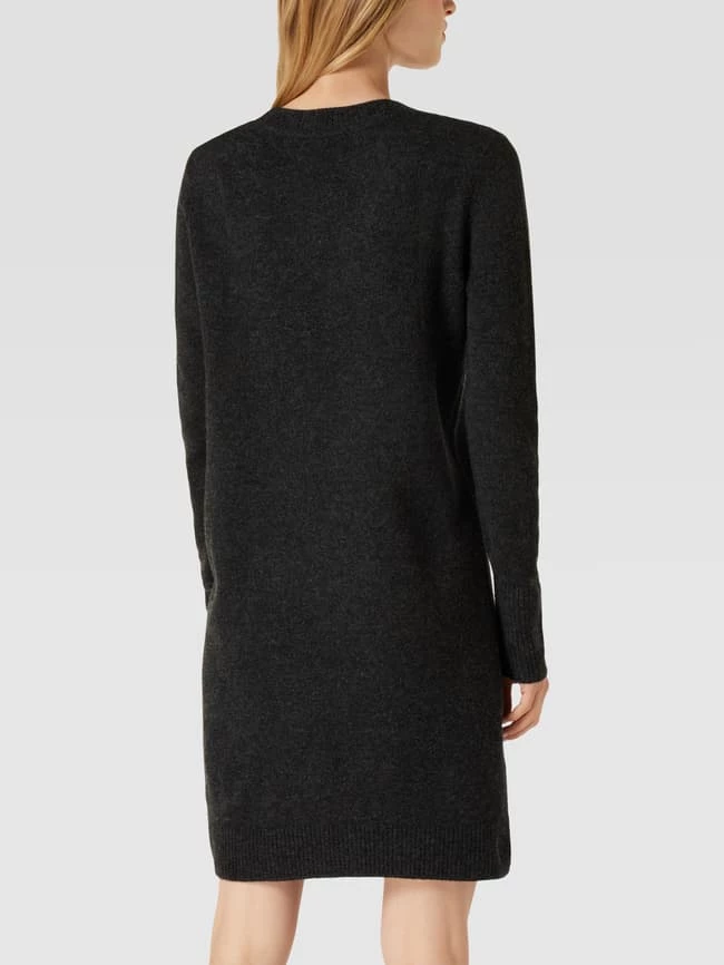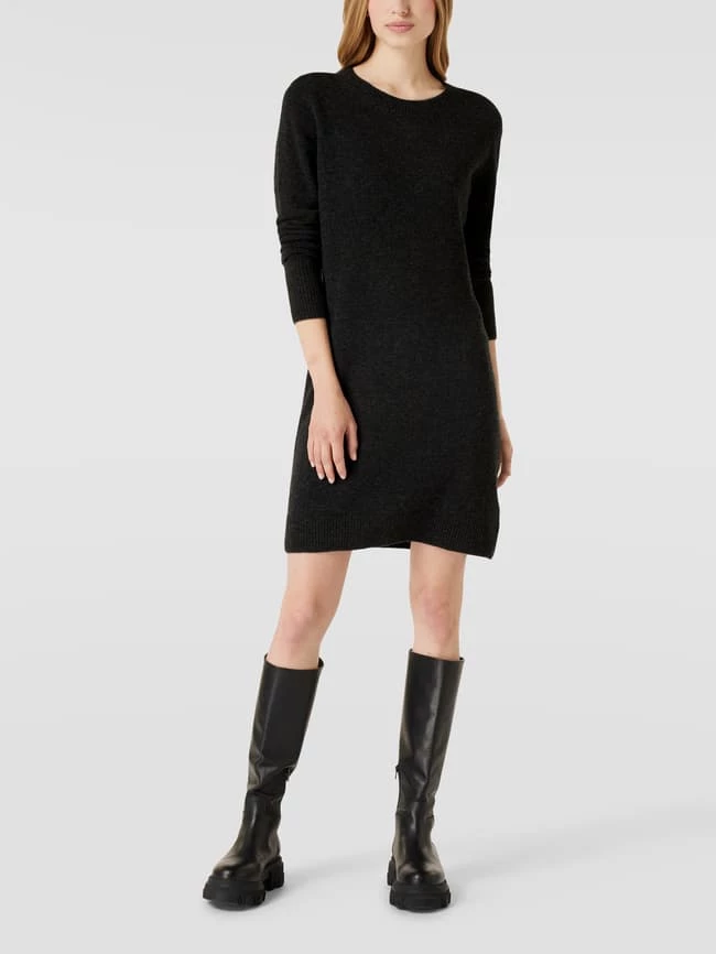 Christian Berg Woman Knielanges Strickkleid Mit Geripptem Rundhalsausschnitt – Anthrazit Meliert
