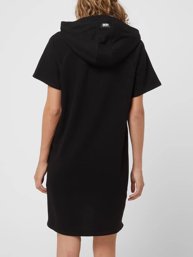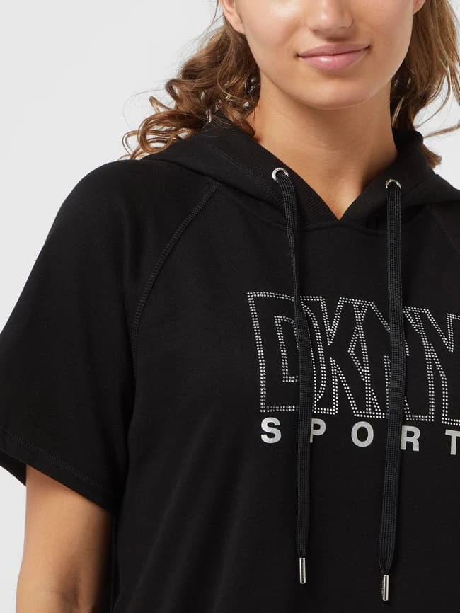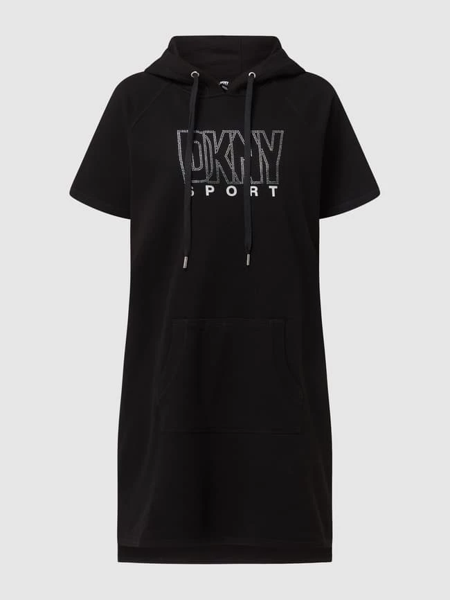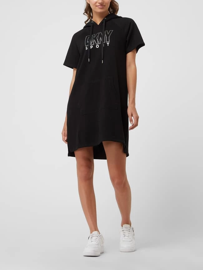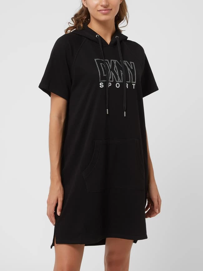Das Sweatkleid von DKNY PERFORMANCE ist aus einer Baumwollmischung gefertigt. Es zeigt sich in lockerer Passform mit Kapuze, Raglanärmeln und Strasssteinen.
