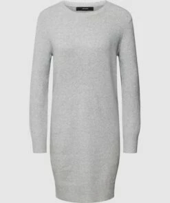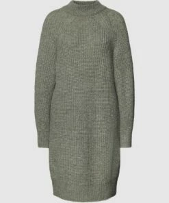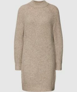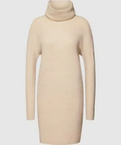 Das Kleid von Esprit ist aus einem Baumwoll-Mix mit Woll-Anteil gefertigt und locker geschnitten. Es kommt in Strick-Optik, mit Stehkragen und gerippten Abschlüssen.