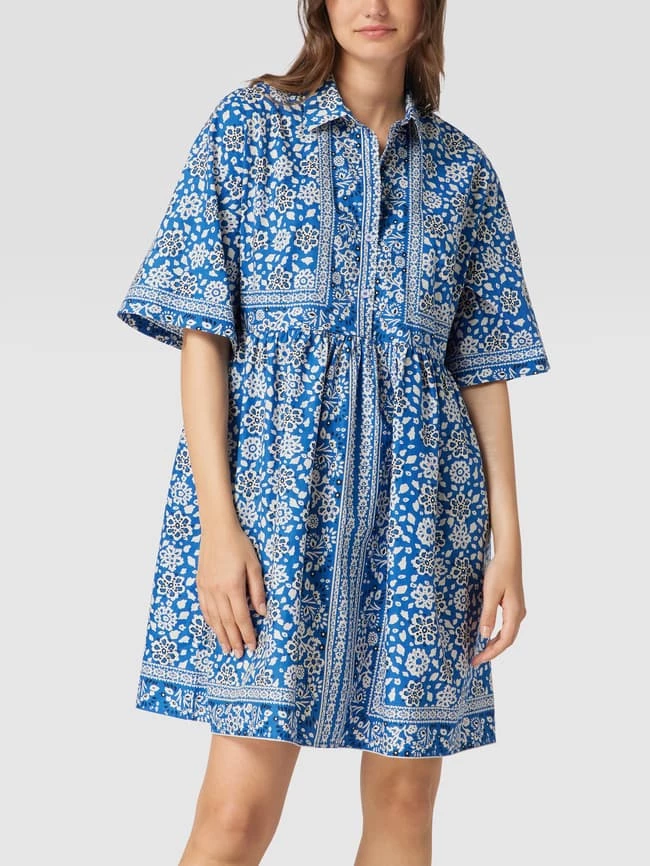Jake*s Casual Minikleid Aus Baumwolle Mit Floralem Allover-Muster – Royalblau