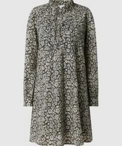 Das Minikleid von Jake*s Casual ist aus reiner Baumwolle mit Bio-Anteil gefertigt und ausgestellt geschnitten. Es zeigt sich im Retro-Look mit floralem Muster und Rundhalsausschnitt.