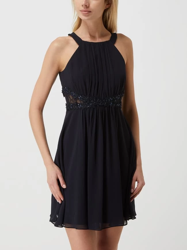 Das Cocktailkleid von Jake*s Cocktail ist aus Chiffon gefertigt und tailliert geschnitten. Es kommt mit amerikanischem Ausschnitt, Kontrasteinsatz und Pailletten.