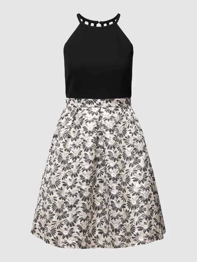 Das Cocktailkleid von Jake*s Cocktail ist aus einem Viskose-Mix gefertigt und tailliert geschnitten. Es zeigt sich mit Taillenpasse und Effektgarn sowie Rockpartie mit floralem Allover-Muster.