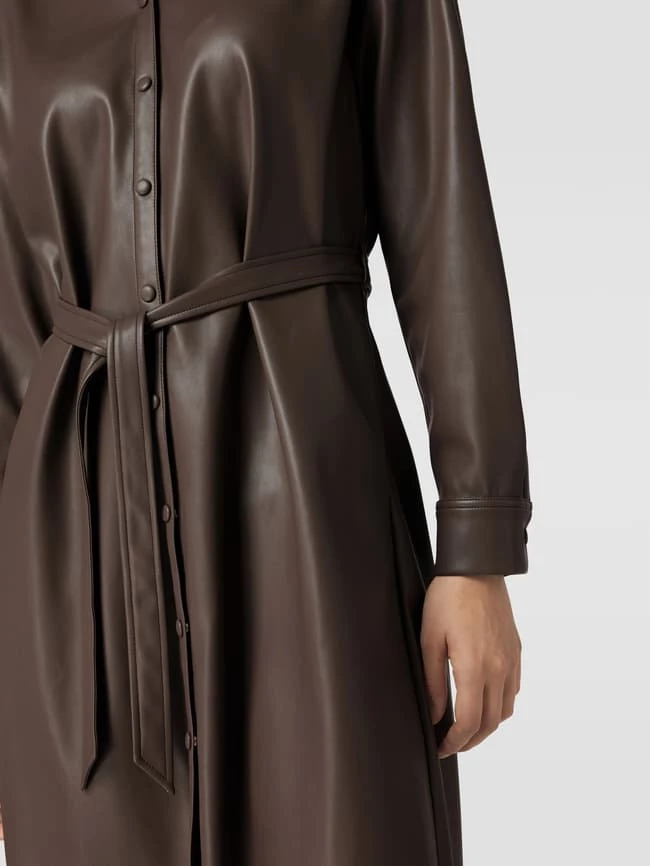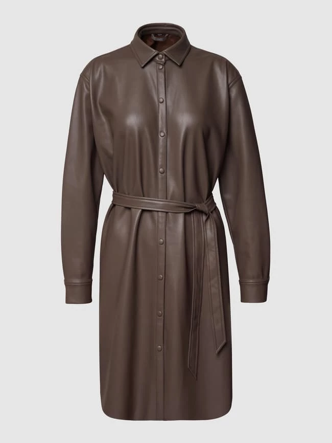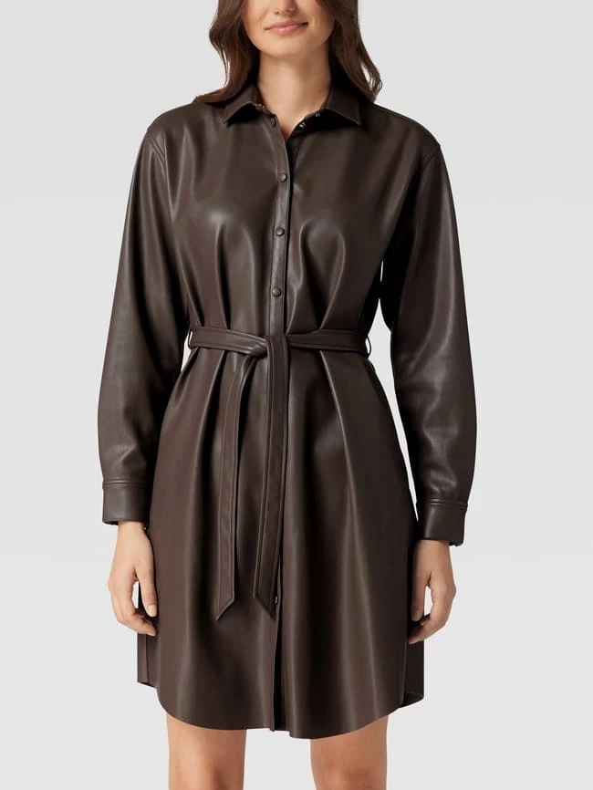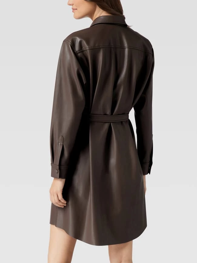 Das Minikleid von Jake*s Collection ist aus robustem Material gefertigt und tailliert geschnitten. Es zeigt sich in Leder-Optik mit Sportmanschetten und Umlegekragen.