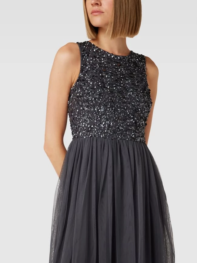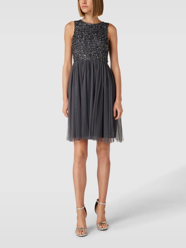 LACE & BEADS Cocktailkleid Mit Paillettenbesatz – Anthrazit