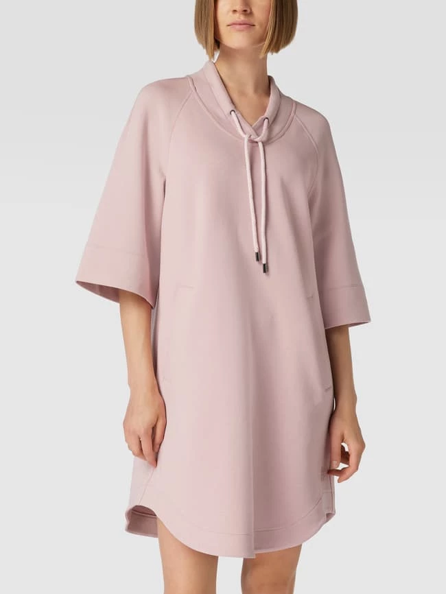 Das Sweatkleid von Marc Cain ist aus einem Baumwoll-Mix mit Stretch-Anteil gefertigt und im Oversized-Look gehalten. Es zeigt sich in unifarbenem Design sowie mit Label-Print und Stehkragen mit Tunnelzug.