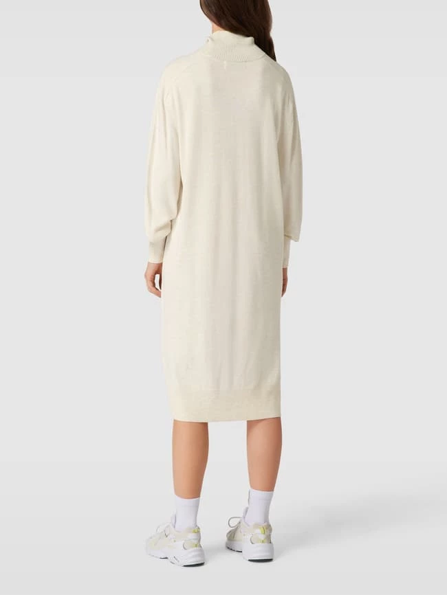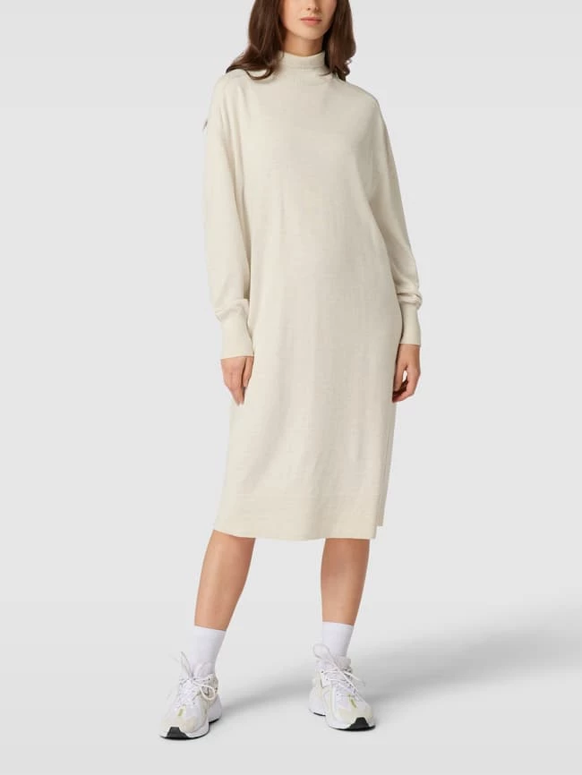 Das Midikleid von MARC O’POLO ist aus einem Schurwoll-Viskose-Mix mit Kaschmir-Anteil gefertigt und locker geschnitten. Es zeigt sich in melierter Optik mit geripptem Stehkragen.