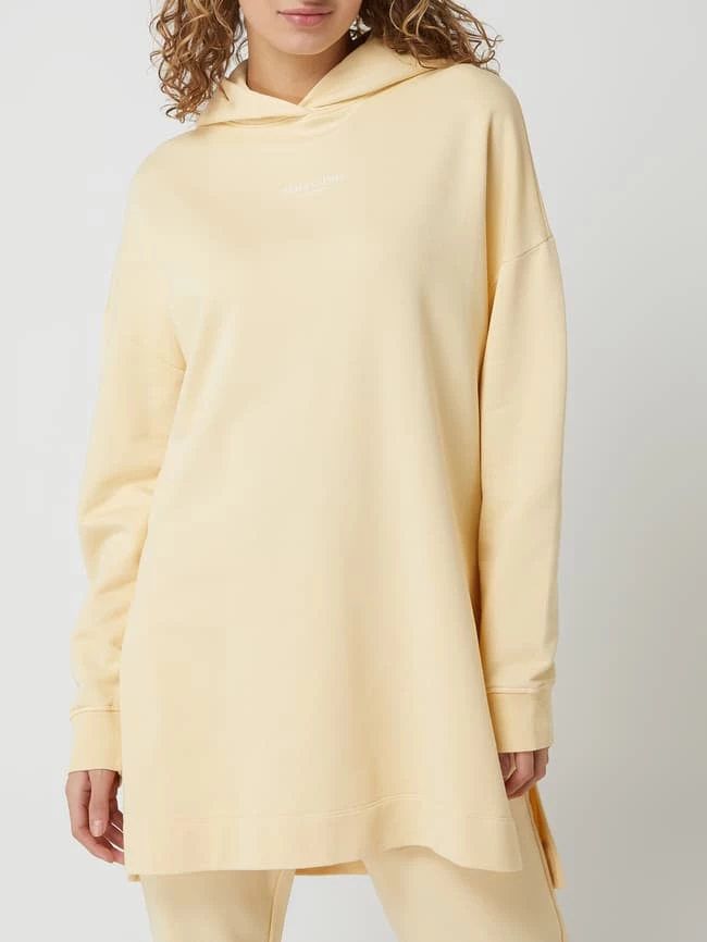 Das Sweatkleid von MARC O’POLO ist aus reiner Baumwolle mit Bio-Anteil gefertigt. Es kommt in leicht ausgestellter Passform mit Kapuze, überschnittenen Schultern und Logo-Print.