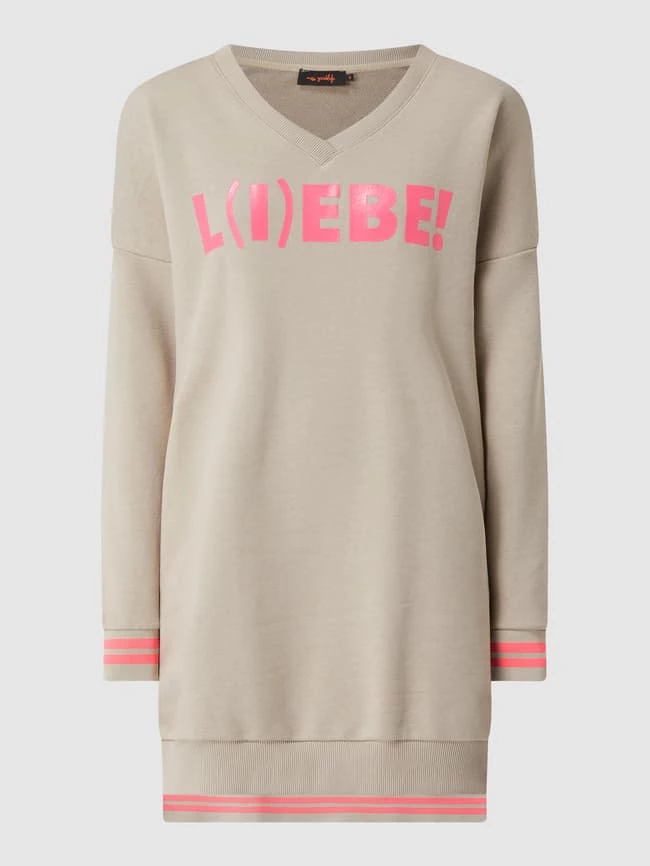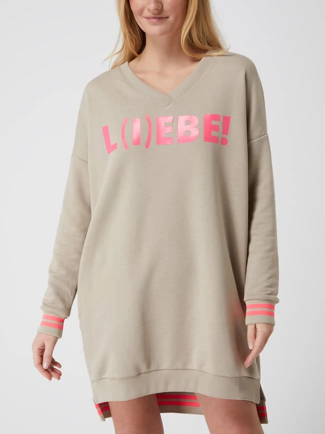 Das Sweatkleid von miss goodlife ist aus reiner Baumwolle gefertigt und leicht ausgestellt geschnitten. Es kommt mit V-Ausschnitt, Eingrifftaschen und Message-Print.