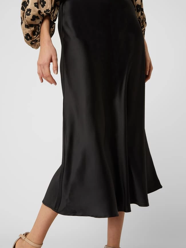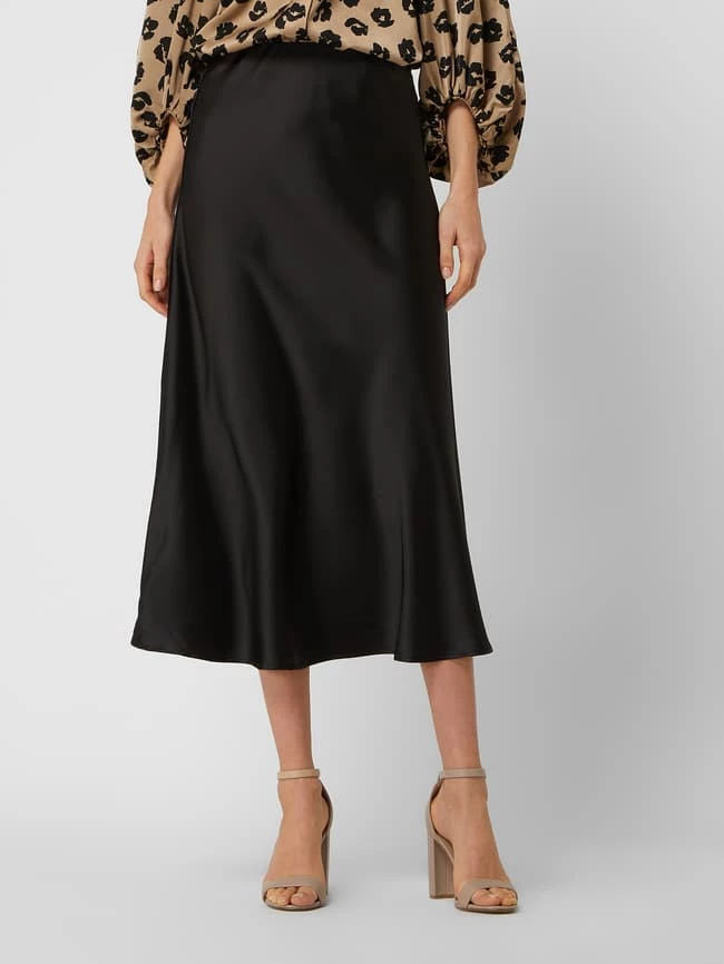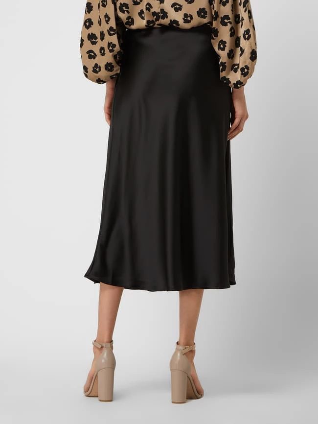 Der Midirock von Neo Noir ist aus Satin gefertigt. Er zeigt sich in ausgestellter Passform mit elastischem Bund.