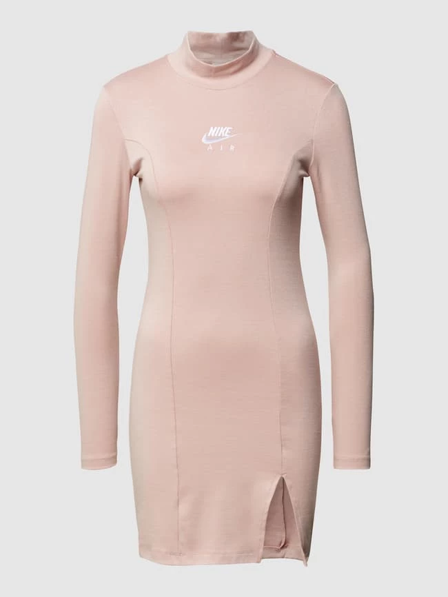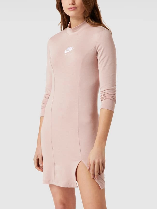 Das Sweatkleid von Nike ist aus einem Material-Mix mit Stretch-Anteil gefertigt und körpernah geschnitten. Es zeigt sich mit langen Ärmeln, Stehkragen, Teilungsnähten und Logo-Stitching.