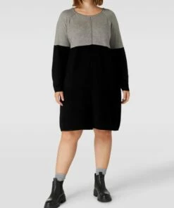 Das Strickleid von ONLY CARMAKOMA ist aus einer Viskosemischung gefertigt und gerade geschnitten. Es kommt in Two-Tone-Machart und Knielänge mit Rundhalsausschnitt und gerippten Abschlüssen.