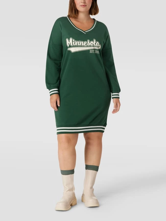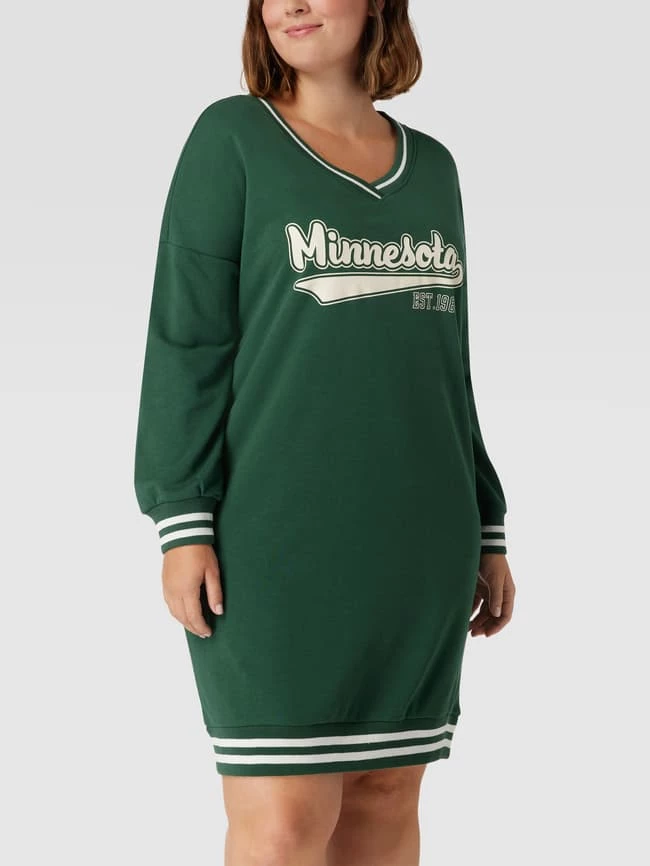 ONLY CARMAKOMA PLUS SIZE Sweatkleid Mit Kontraststreifen Modell ‘CARNIANA’ – Dunkelgrün