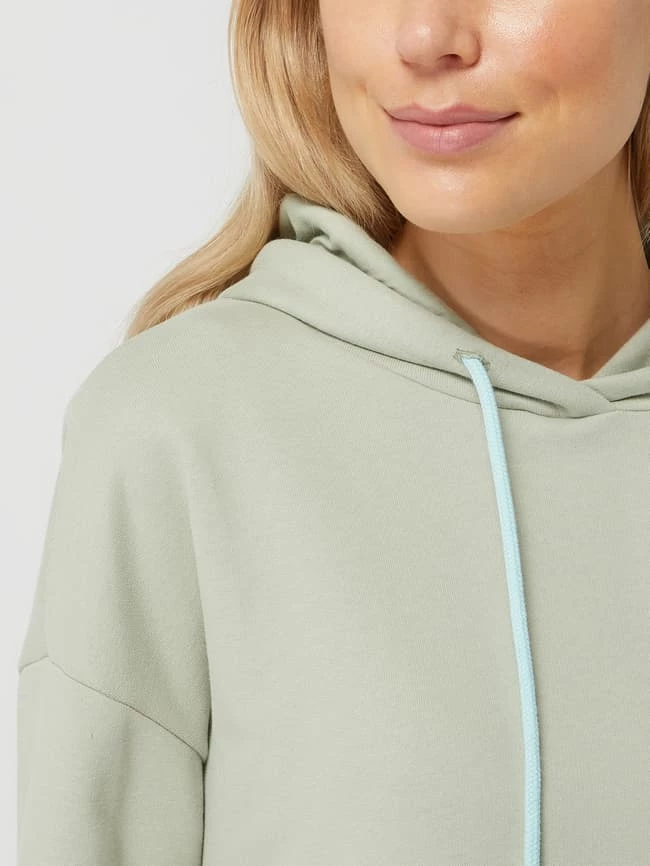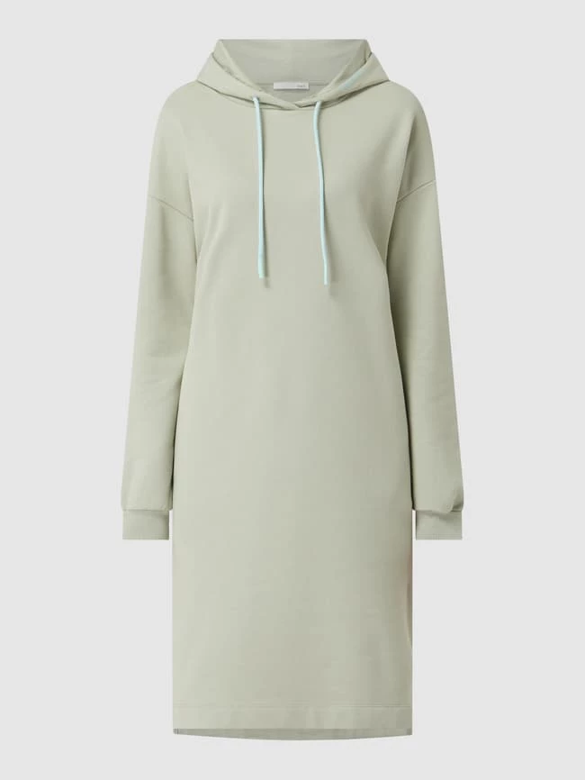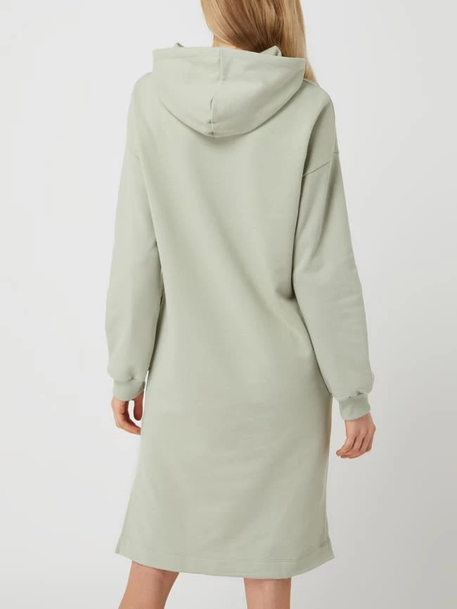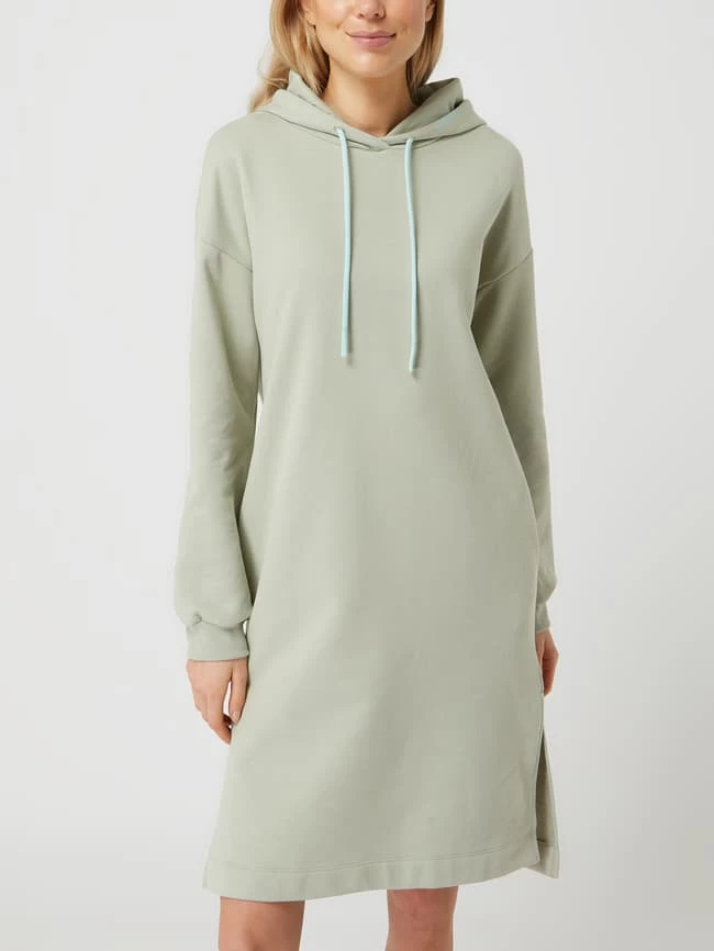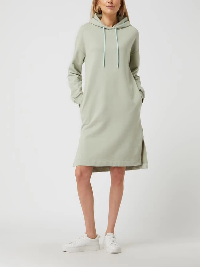 Das Sweatkleid von Oui ist aus einer Baumwollmischung gefertigt und leicht ausgestellt geschnitten. Es kommt mit Kapuze, überschnittenen Schultern und Eingrifftaschen.