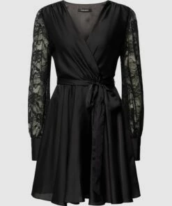 Swing Knielanges Kleid Mit Taillengürtel – Schwarz
