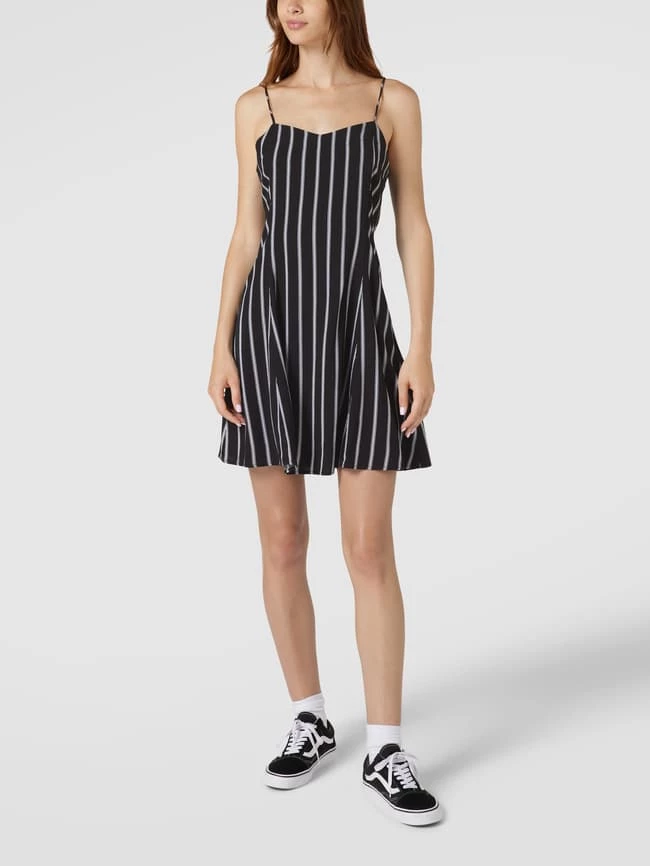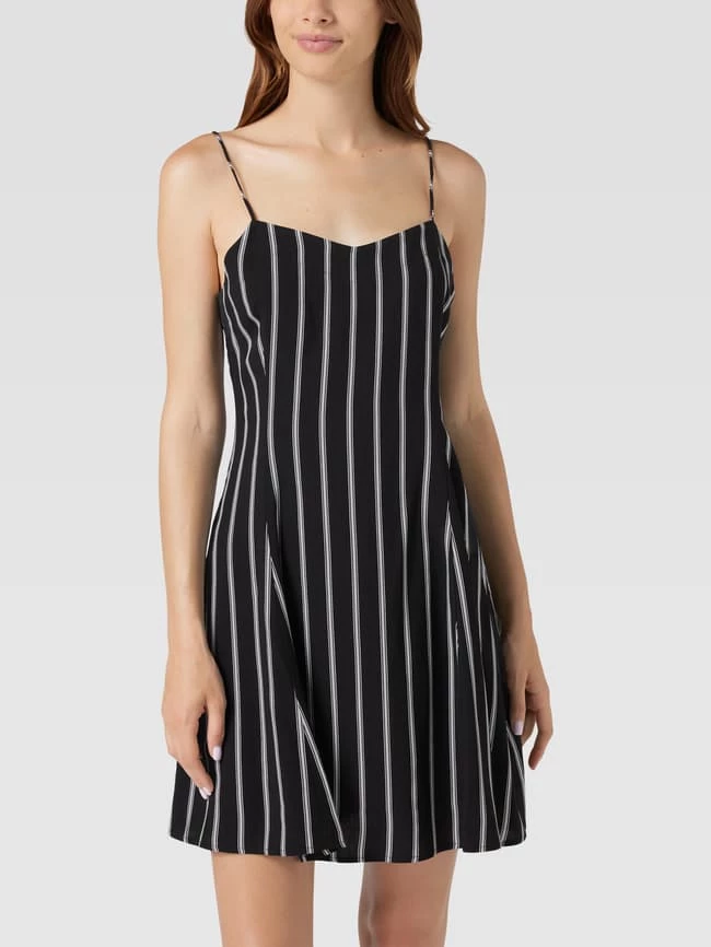 Das Minikleid von REVIEW ist aus reiner Viskose gefertigt und körpernah geschnitten. Es zeigt sich mit floralem Allover-Muster und Herz-Ausschnitt sowie verstellbaren Spaghettiträgern.