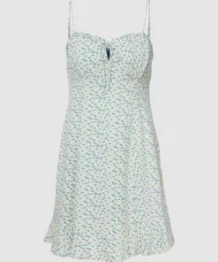 Das Minikleid von REVIEW ist aus reiner Viskose gefertigt und körpernah geschnitten. Es zeigt sich mit floralem Allover-Muster und Herz-Ausschnitt sowie verstellbaren Spaghettiträgern.