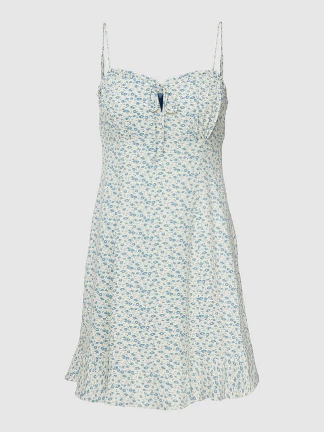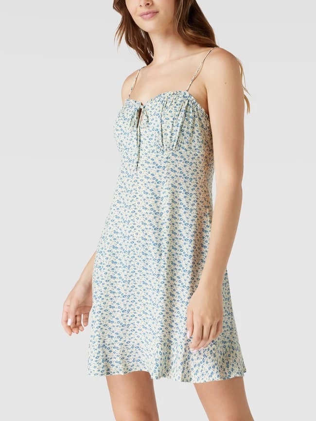 Das Minikleid von REVIEW ist aus reiner Viskose gefertigt und tailliert geschnitten. Es zeigt sich mit Schleifendetail und verstellbaren Spaghettiträgern sowie Herz-Ausschnitt.