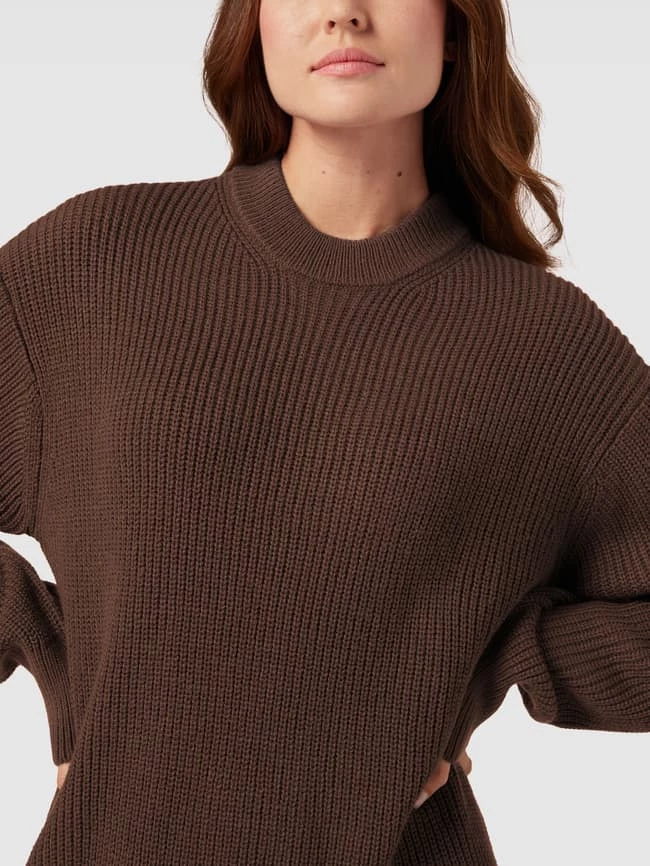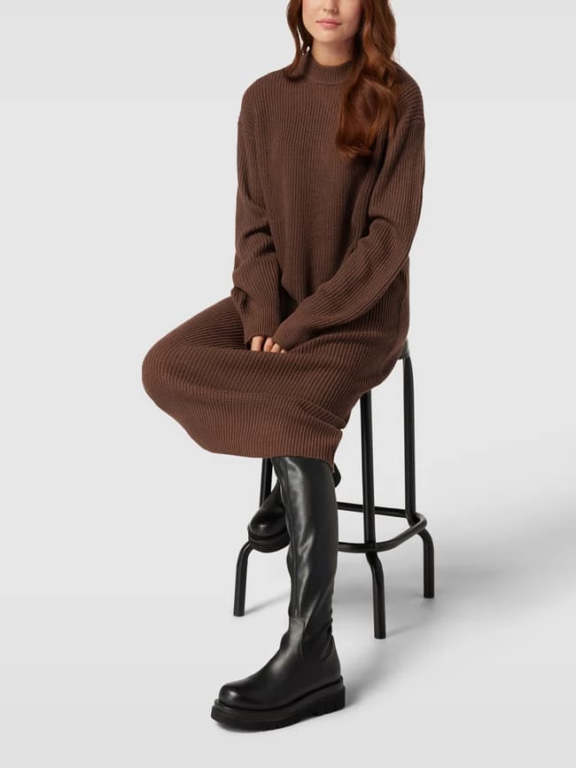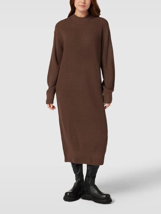 Das Strickkleid von REVIEW ist aus einem strapazierfähigen Material gefertigt und oversized geschnitten. Es zeigt sich in Ripp-Optik sowie in Midilänge mit Rundhalsausschnitt.