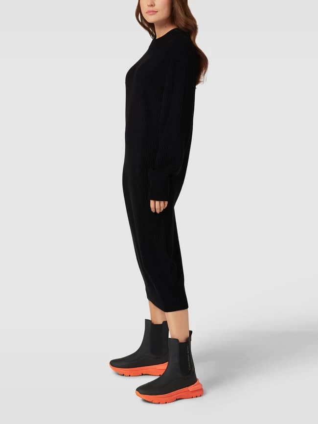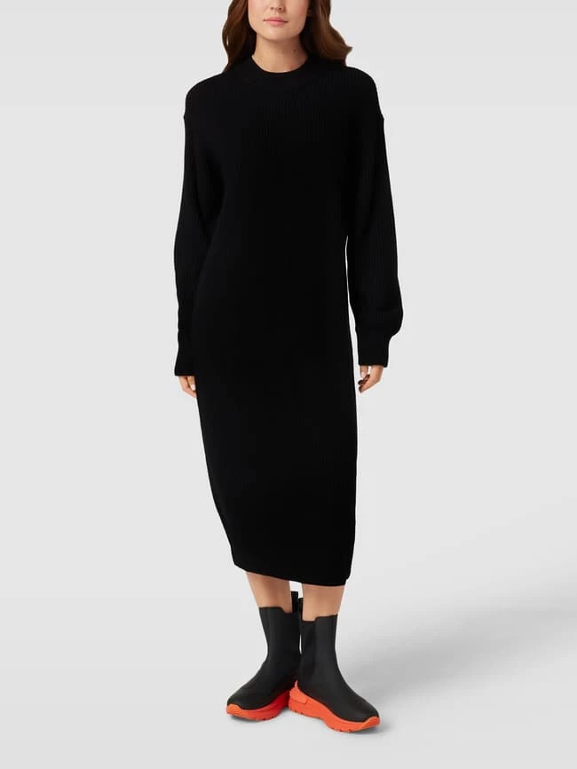 Das Strickkleid von REVIEW ist aus einem strapazierfähigen Material gefertigt und oversized geschnitten. Es zeigt sich in Ripp-Optik sowie in Midilänge mit Rundhalsausschnitt.