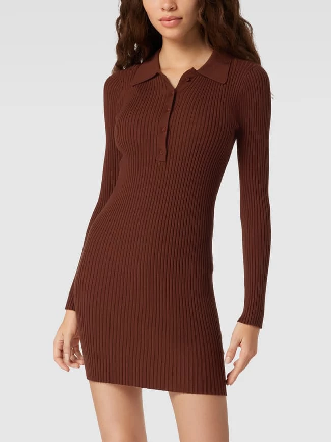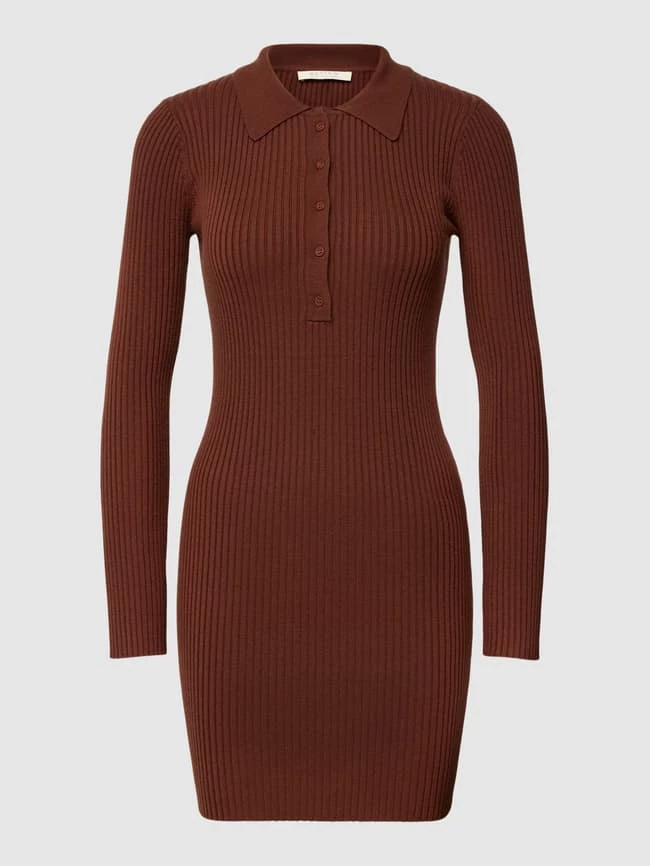 REVIEW Strickkleid Mit Umlegekragen – Schokobraun