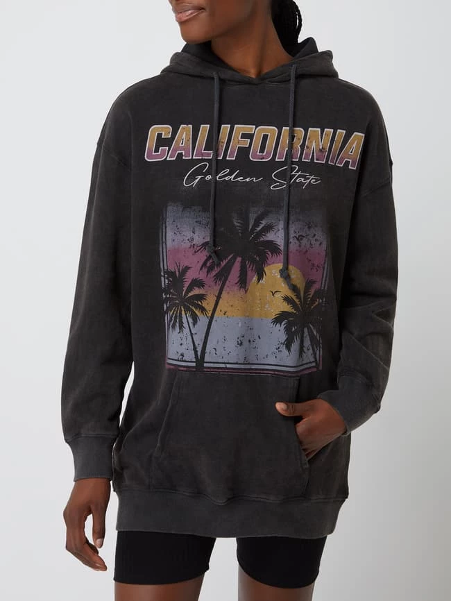 Das Sweatkleid von REVIEW ist aus reiner Baumwolle gefertigt und ausgestellt geschnitten. Es kommt mit Kapuze, überschnittenen Schultern und Print.