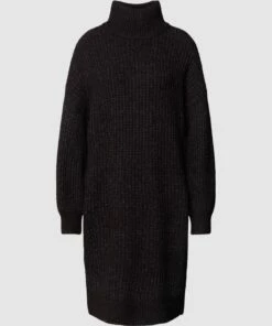 Noisy May Oversized Knielanges Strickkleid Mit Stehkragen Modell ‘Robina’ – Dunkelgrau Meliert