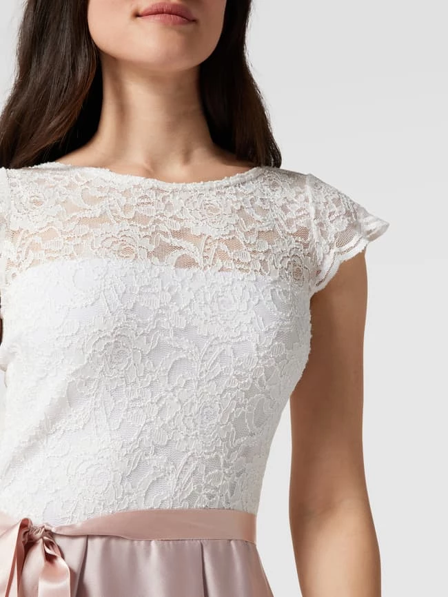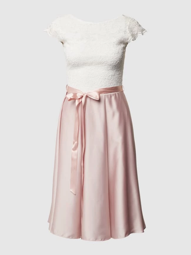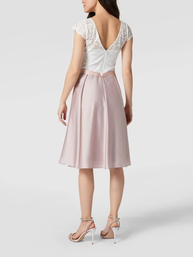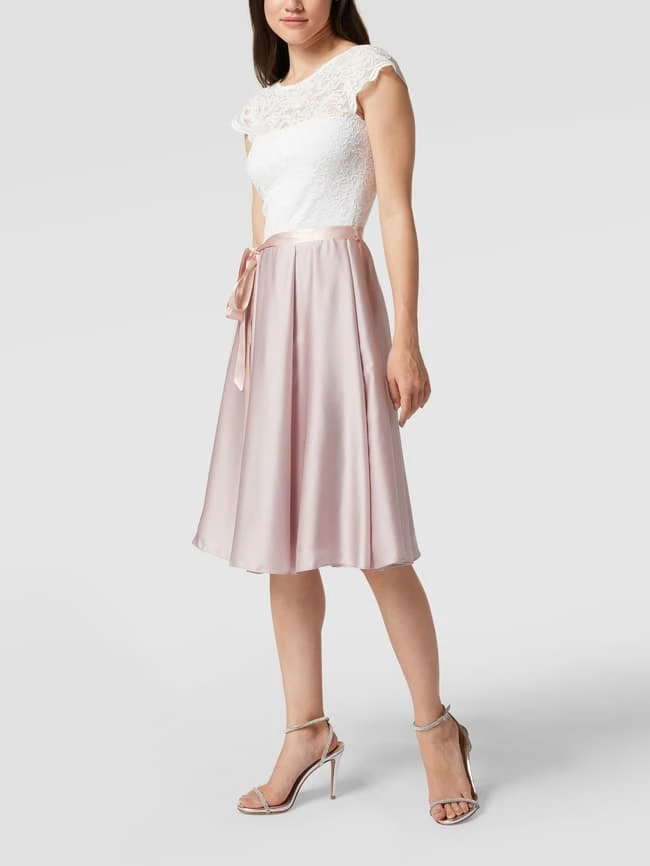 Das Cocktailkleid von SWING ist aus strapazierfähigem Material gefertigt und tailliert geschnitten. Es kommt mit Taillenschnürung, mittigem Nahtverlauf und semitransparenter Spitze.