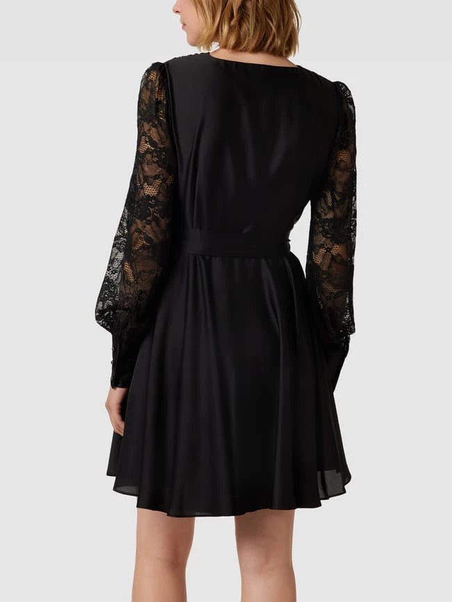 Swing Knielanges Kleid Mit Taillengürtel – Schwarz