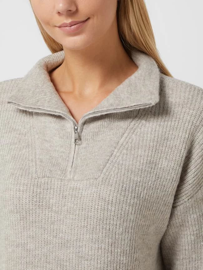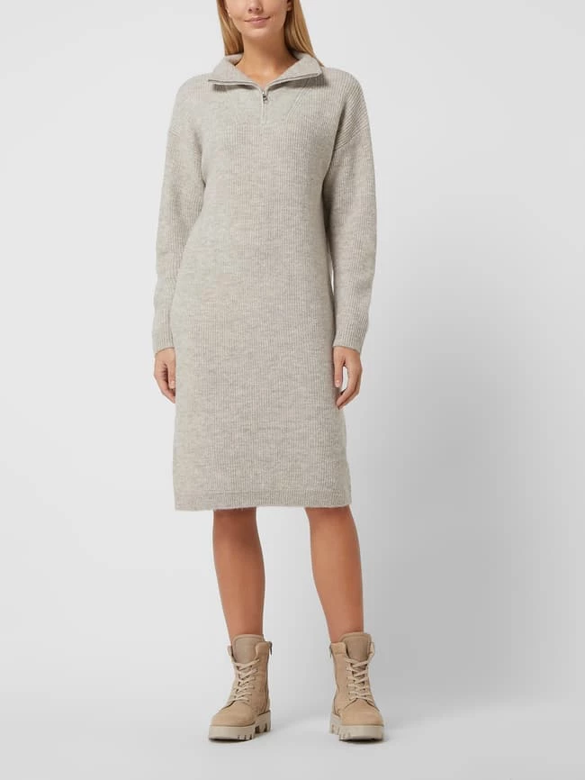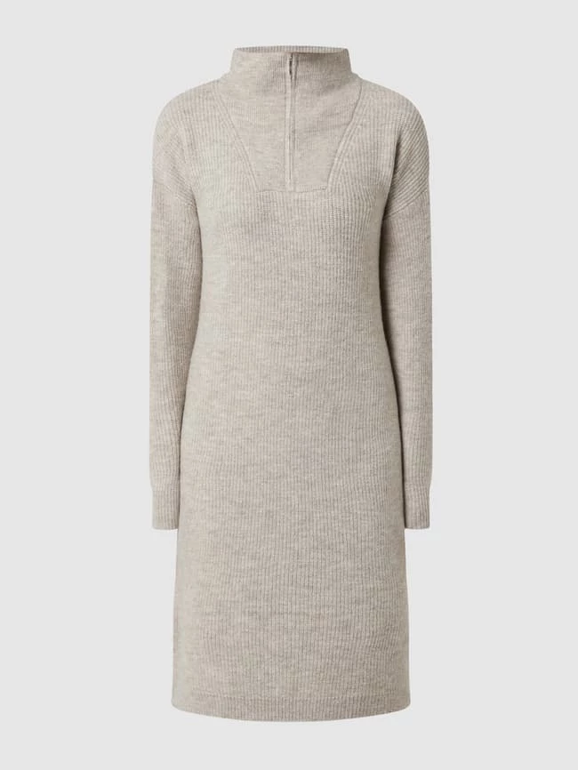 Das Strickkleid von TOM TAILOR Denim ist aus strukturiertem Material gefertigt und leicht ausgestellt geschnitten. Es kommt in Melange-Optik mit Stehkragen, kurzem Reißverschluss und überschnittenen Schultern.