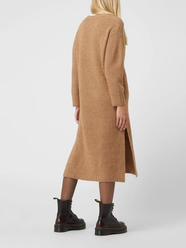 Das Strickkleid von TOM TAILOR Denim ist aus einer Materialmischung mit recyceltem Anteil und Stretch gefertigt. Es kommt in gerader Passform mit Rippenstruktur, Metall-Logo und Seitenschlitzen.