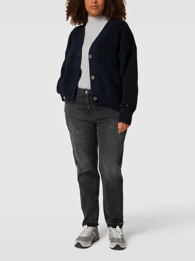 Der Cardigan von Tommy Hilfiger Curve ist aus einem Baumwoll-Mix gefertigt und locker geschnitten. Er kommt mit Label-Details, V-Ausschnitt und Knopfleiste.