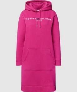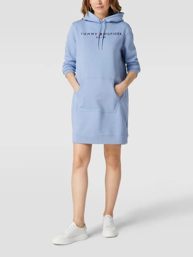 Das Sweatkleid von Tommy Hilfiger ist aus einem Baumwoll-Mix gefertigt und gerade geschnitten. Es zeigt sich in Minilänge mit Brand-Stitching und Kapuze mit Tunnelzug.