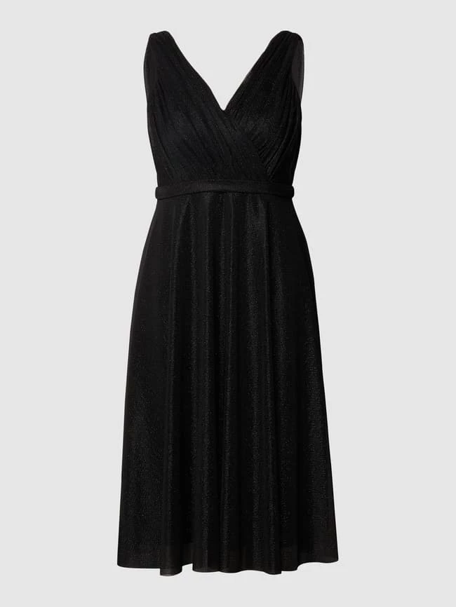 Das Cocktailkleid von TROYDEN COLLECTION ist aus schimmerndem Material gefertigt und tailliert geschnitten. Es kommt mit V-Ausschnitt, breiten Trägern und Taillenpasse sowie gelegten Falten.